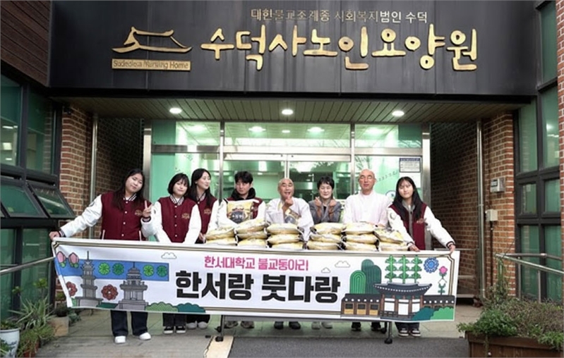 상월결사의 불교중흥 원력이 청년 전법의 현장에서 아름다운 결실로 이어졌다.수덕사 대학전법단의 지원을 받아 활발히 활동 중인 한서대학교 불교동아리 ‘한서랑 붓다랑’ 학생들이 지역 어르신들을 위한 자비행에 나서며 감동을 전했다. 한서랑 붓다랑 회원 10여 명은 지난 14일 사회복지법인 수덕 수덕사노인요양원을 방문해 어르신들