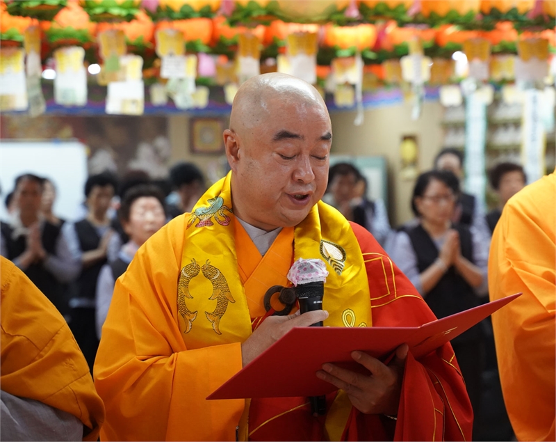 법성 스님은 발원문을 통해 “산하 대지 위에 피어오르는 그윽한 불향이 이곳 대구시 비산동 청정도량 세계불교교황청 보궁사를 온통 뒤덮고 있으며, 저희 불자들은 경건한 마음으로 합장하고 부처님 전에 모여 기도를 드리고자 발원한다”고 서원했다.