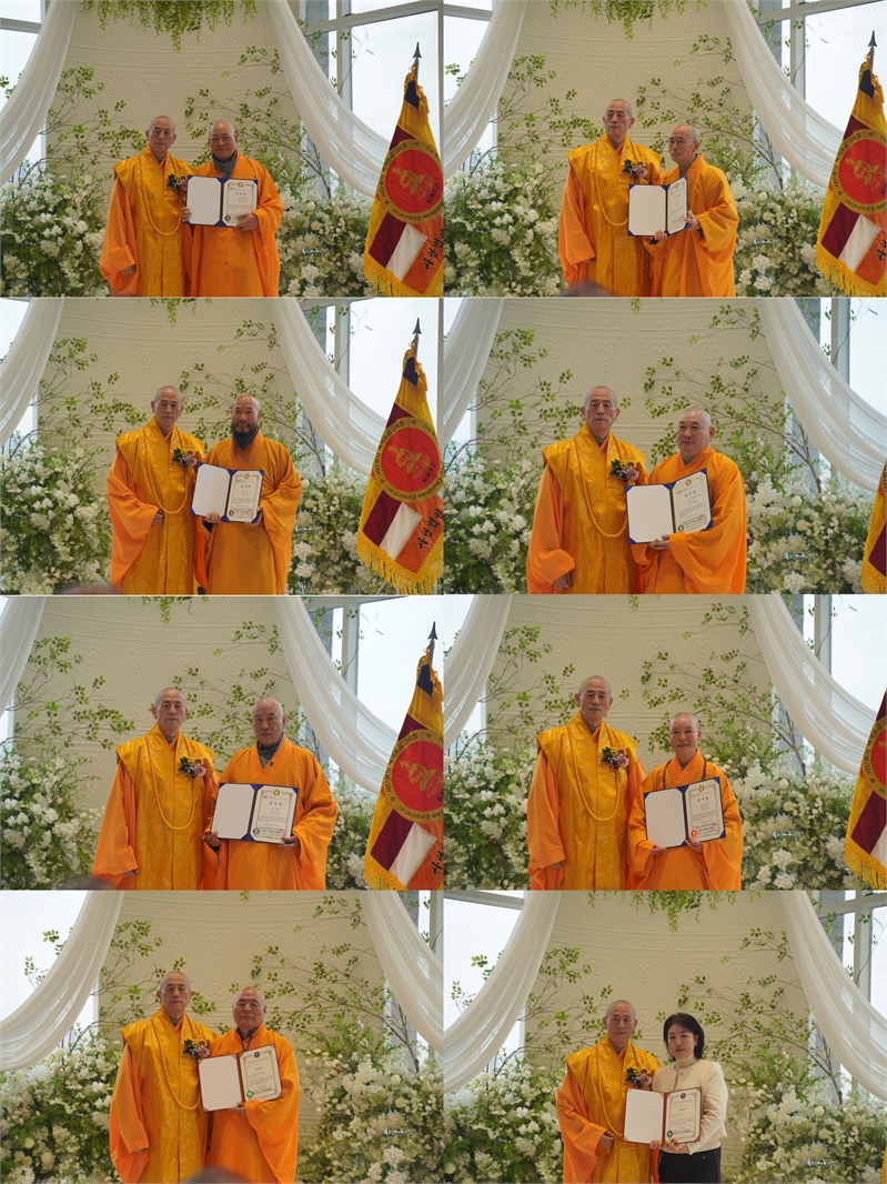 인연스님, 성법스님, 도연스님, 법성스님에게 대승정 품계가 수여됐으며, 이는 수행의 깊이와 종단 기여도를 인정받은 결과로 참석자들의 큰 박수를 받았다.