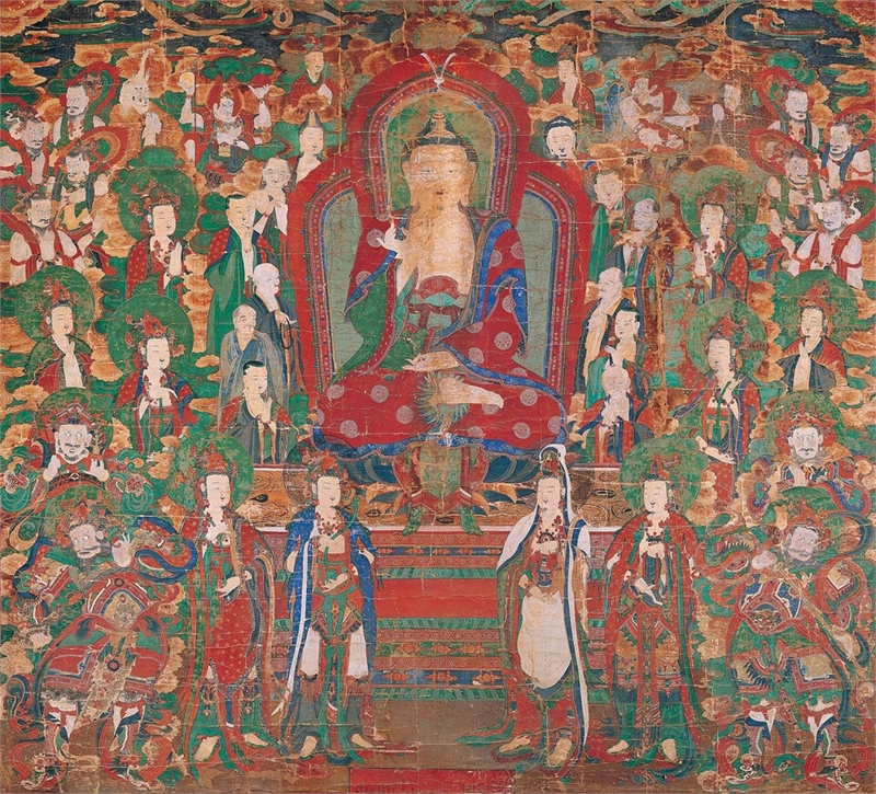 먼저 '가평 현등사 아미타여래설법도'는 1759년(영조 35년)이라는 명확한 제작 시기와 수화승(首畵僧) 오관(悟寬) 스님을 비롯한 제작자, 그리고 현등사라는 원봉안처가 화기(畵記)에 뚜렷이 남아 있어 사료적 가치가 매우 높다.