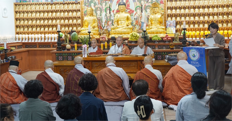 이후 세계불교교황청 총괄본부장 호법 스님은 북한 동포 불자들에게 보내는 메시지를 낭독했고, 석능인 대승통은 법문을 통해 불교의 자비와 화합 정신으로 한반도의 평화와 인류 공영을 기원했다.