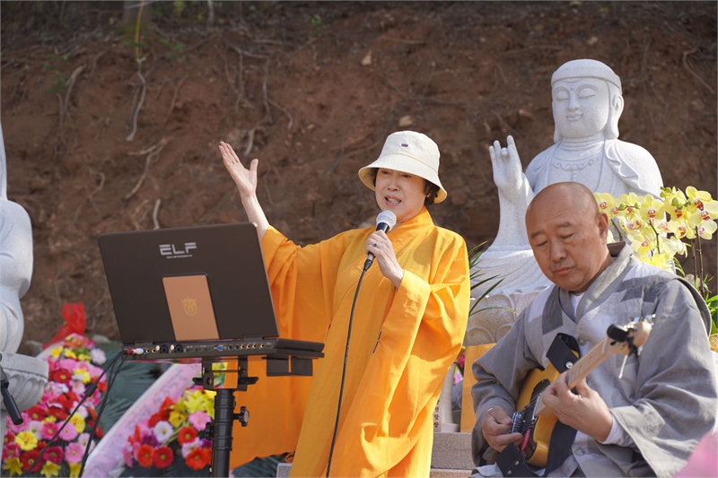 첫 무대로 응공선사가 대중가요를 선보이며 흥겹게 공연의 막을 올렸고, 주지 혜자 스님이 직접 기타 반주로 선율을 더하며 도량을 따뜻한 선율로 채웠다.